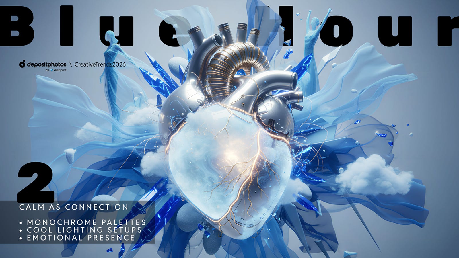 За даними Depositphotos, інтерес до запитів, пов’язаних із синіми відтінками, суттєво виріс. «Синя хвиля» повертається не як банальний корпоративний колір, а як мова емоційного інтелекту: він збалансовує, заспокоює й допомагає сприймати інформацію без відчуття візуального перевантаження.