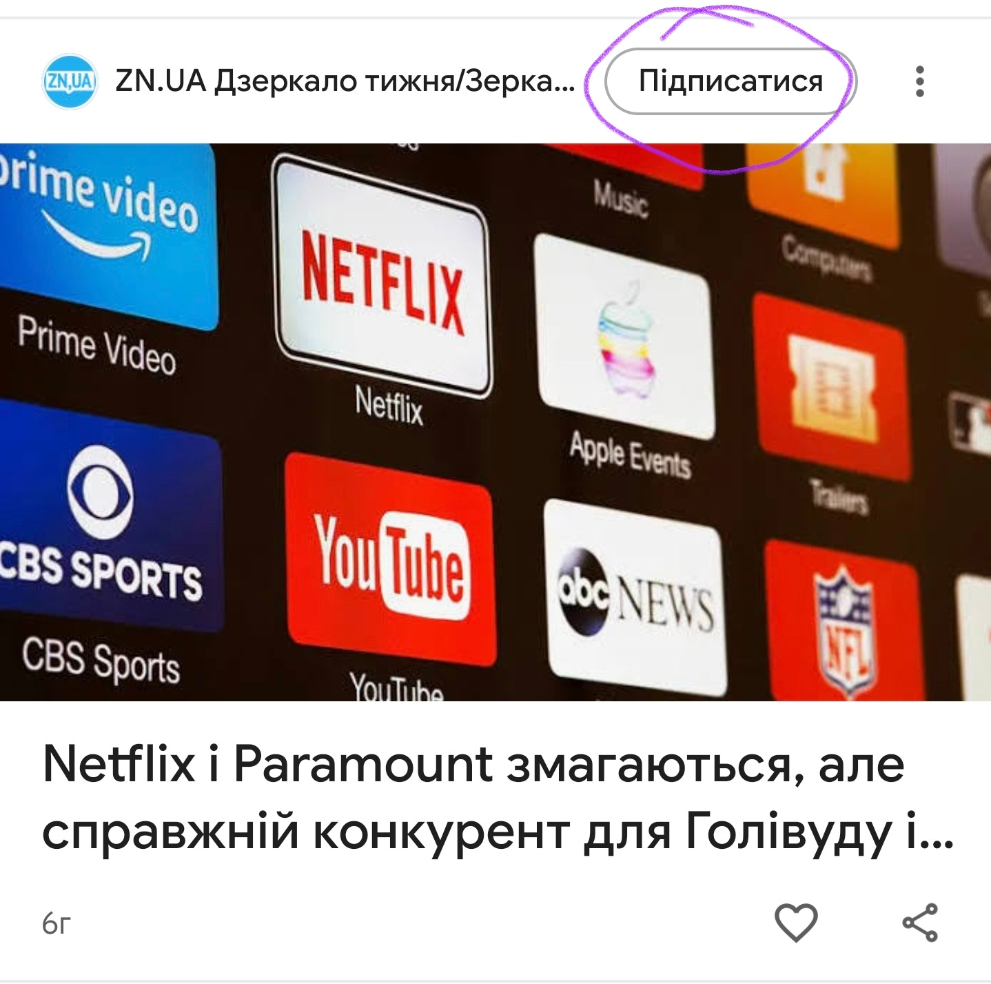 А вже зараз можна рекомендувати їм підписатися на ваше медіа в Google Discover, а вам — перевірити, чи коректно складений профіль вашого видання в Google (для цього знайдіть свій текст у Discover і натисніть на назву медіа над ним).