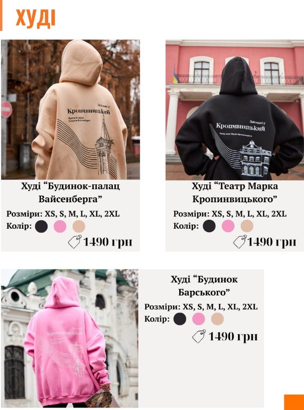 Суть і формат: Це перша лімітована колекція брендованих речей видання, до якої увійшли худі, екоторбинки та пазли. Головна особливість мерчу — унікальні авторські ілюстрації архітектурних символів Кропивницького, створені дизайнеркою Дар’єю Федоренко.