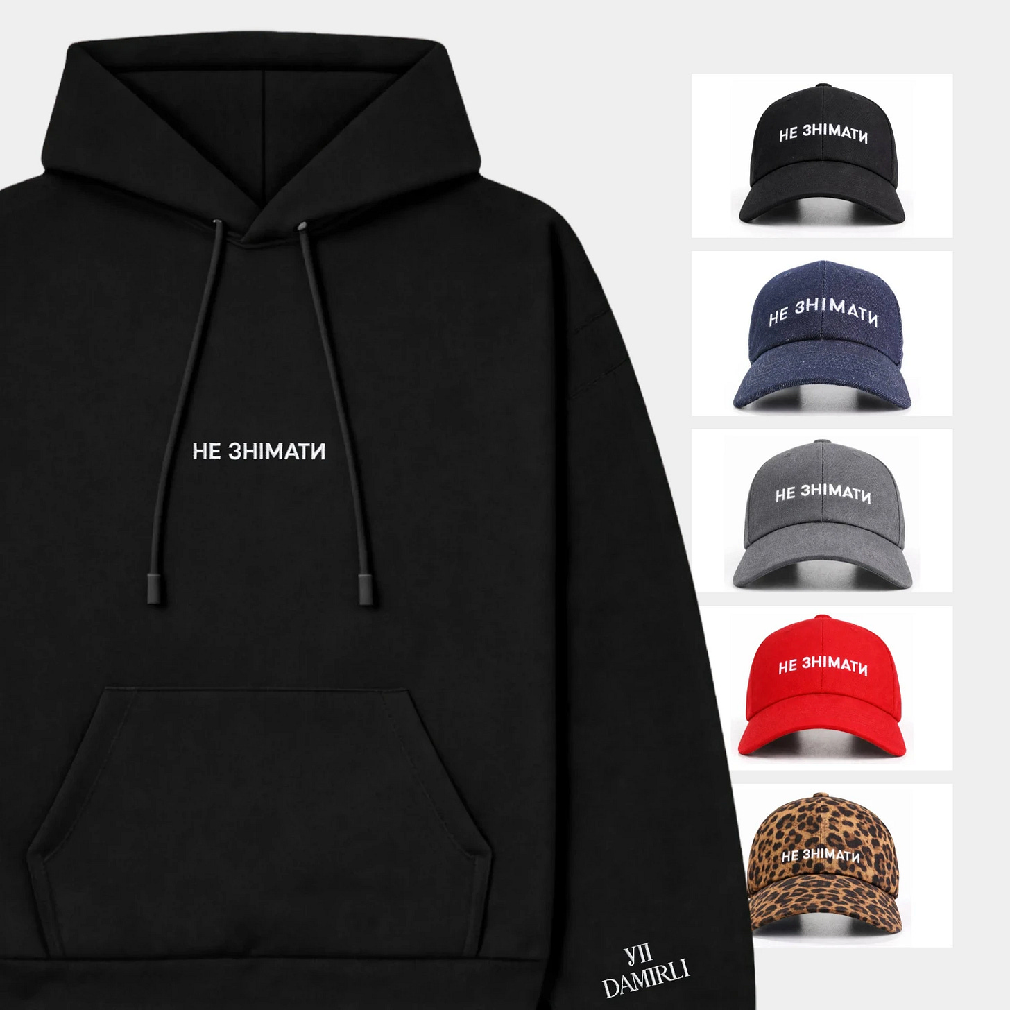 Суть і формат: до лімітованої лінійки одягу увійшли худі (4500 грн) та кепки (2000 грн) у кількох кольорах: червоному, чорному, синьому, сірому та з леопардовим принтом.