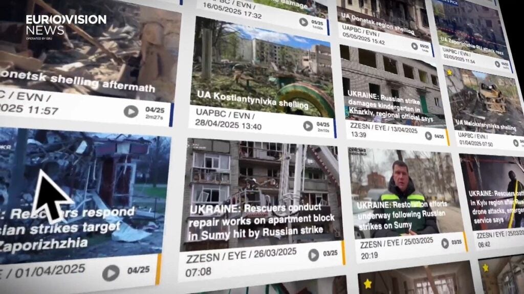 Суть і формат: цифрова платформа містить понад 30 000 верифікованих відео- та аудіоматеріалів, які документують війну в Україні з лютого 2022 року. До архіву увійшли новинні сюжети суспільних мовників з усієї Європи та перевірений контент із соцмереж, зібраний через систему Eurovision News Exchange.